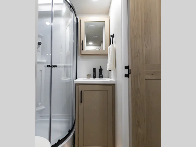 Sleeps 2 Slides 1 Length 23 ft 10 in Ext Width 8 ft Ext Height 10 ft 11 in Hitch Weight 634 lbs Dry Weight 5132 lbs Cargo Capacity 1662 lbs Fresh Water Capacity 54 gals Grey Water Capacity 30 gals Black Water Capacity 30 gals Furnace BTU 35000 btu Available Beds RV Queen Refrigerator Type 12V Cooktop Burners 3 Number of Awnings 1 LP Tank Capacity 30 lbs Water Heater Capacity 6 gal Water Heater Type Gas/Electric with Quick Recovery AC BTU 15000 btu TV Info LR 12V Smart Entertainment TV Awning Info 18' Power with Adjustable Rain Dump and LED Lights Axle Count 2 Number of LP Tanks 2 Shower Type Radius Similar Floorplans