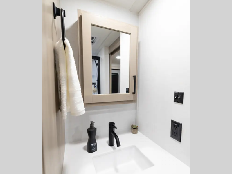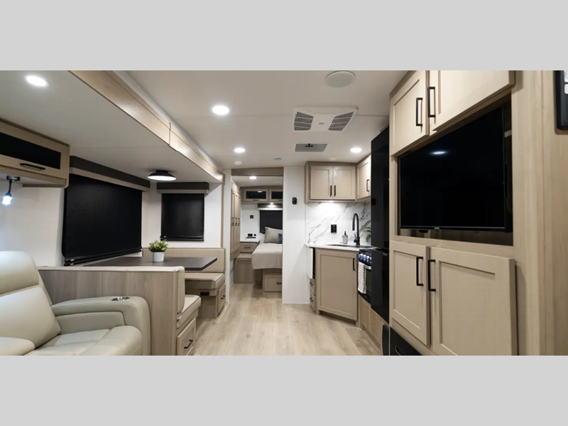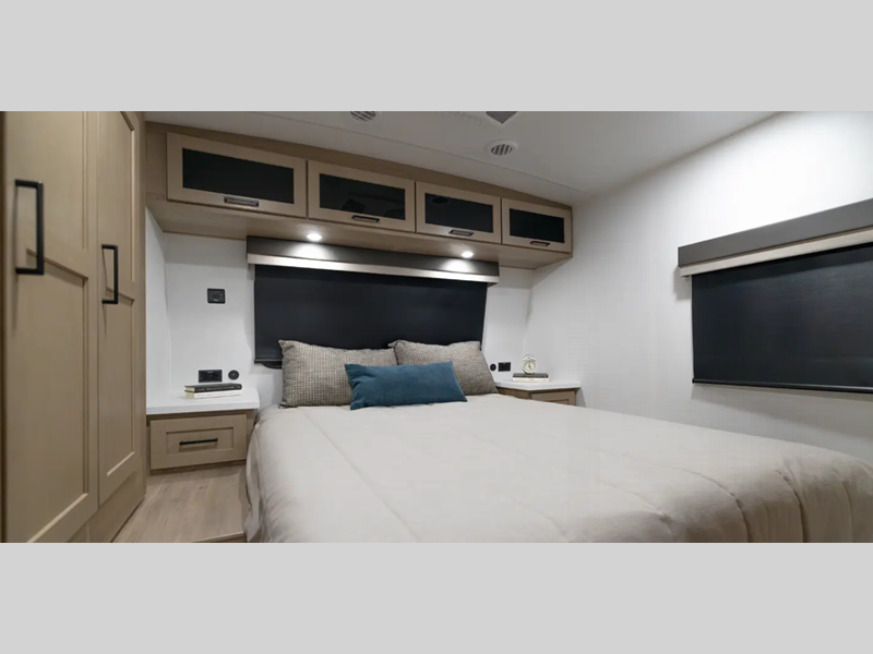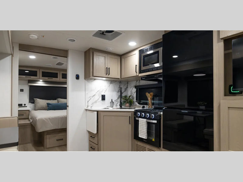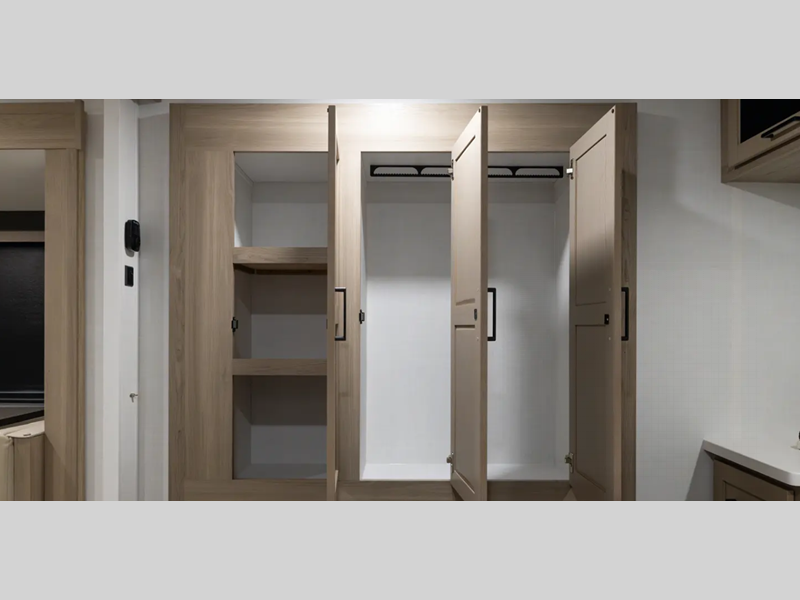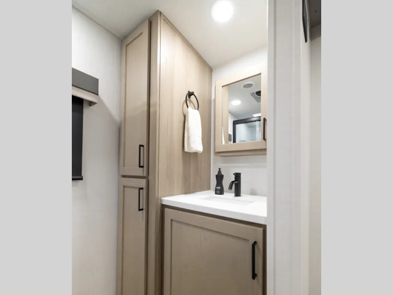 Each is built with 6-sided aluminum cage construction, a fully laminated walkable roof, and aluminum truss roof bracing for added support. You will love the standard features such as, a 200W solar panel, a Key-Alike lock system, and a Winegard Air 360+ prepped for Wi-Fi. The Coast to Coast Package includes amenities that will make you feel right at home including, solid surface kitchen countertops, roller shades, and soft close roller bearing drawers.